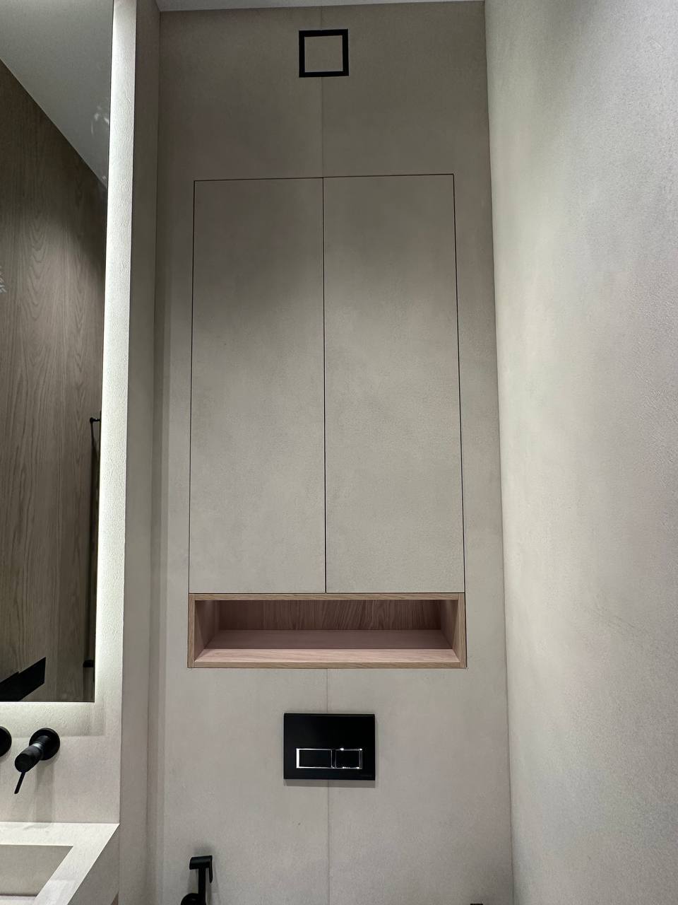 Данный проект для квартиры в Коммунарке был изготовлена достаточно быстро и установлен в кратчайшие сроки. Кухня спроектирована с учётом современных тенденций, включающая кухонный остров, который служит дополнительной рабочей поверхностью и местом для семейных трапез. Высококачественные материалы и продуманный дизайн шкафов и столешниц обеспечивают долговечность и удобство использования, гармонично вписываясь в общий стиль минимализма. В ванную комнату был запрос на функциональность из-за маленького пространства, и на использование водостойких материалов. Смонтирована без зазоров, точно по замеру. Этот проект демонстрирует высокий уровень профессионализма нашей компании. Мы гордимся тем, что создали корпусную мебель для этой квартиры, воплотив в жизнь принципы минимализма и функциональности, чтобы обеспечить максимальный комфорт и удовлетворение заказчиков.