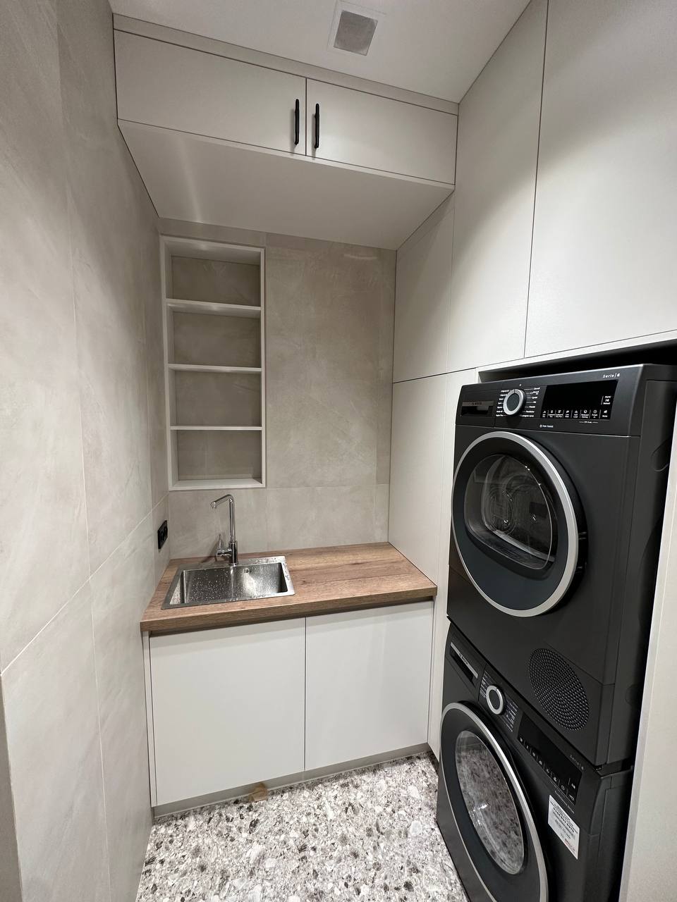 Проект выполнен в скандинавском стиле, сочетание теплых оттенков с природным древесным декором, натуральные материалы перекликаются с современными фактурами и создают минималистичную и уютную атмосферу. Кухня – строгие ровные линии, верх в МДФ эмали , низ в шпоне в натуральном декоре ясень оливковый, без тонировки покрытие матовый лак. Ручки профиль Gola, ящики полного выдвижения, встроенное выдвигающиеся мусорное ведро, лоток, сушка двухуровневая, столешница из искусственного камня Hanex под мрамор, отполированная, плавно переходящая в барную стойку. Отдельно стоящий модуль под технику выполнен в корпусе ЛДСП Австрия с фасадами МДФ покрытие эмаль Renner (Италия). Шкаф в прихожей – вместительный с полками, отделениями со штангами, а так же выдвижные корзины для обуви. Фасады выполнены из МДФ покрытие шпон в декоре дуб белый, тонированный, внутренние вставки фактурный ротанг в тонировке под шпон. Шкаф хозяйственный – предусмотрен для стиральной и сушильной машинок, места для хранения средств, техники и предметов для уборки. Выполнен в корпусе ЛДСП Астрия, фасады Мдф Renner (Италия) жалюзийные, что обеспечивают хорошую вентеляцию. Гардеробная – Угловая вместительная гардеробная, из ЛДСП Австрия, много места для вещей на штагах, по низу ящики для белья. Предусмотрена подсветка, а так же настенное зеркало. Фасады в раздвижной системе Aristo, из МДФ покрытый натуральным шпоном дуб белый, со вставками из ротанга. Тумба под раковину С/У – Минималистичная подвесная тумба выполнена из ЛДСП Австрия, закормленные все детали по периметру, что важно для таких помещений. Ящики полного выдвижения с предусмотренным доступом к сифону. Использованы утолщенные детали , прочная подвесная система. Вся фурнитура в этом проекте от производителя Blum, с доводчиками.